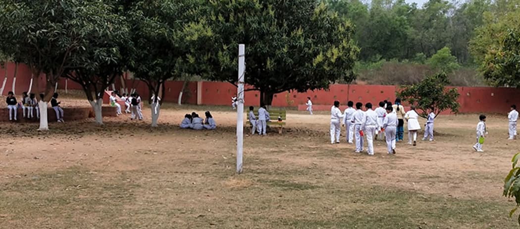 Surrounded by trees, vibrant gardens, and the music of chirping birds, the campus offers a serene atmosphere that supports joyful learning and the holistic development of every student.